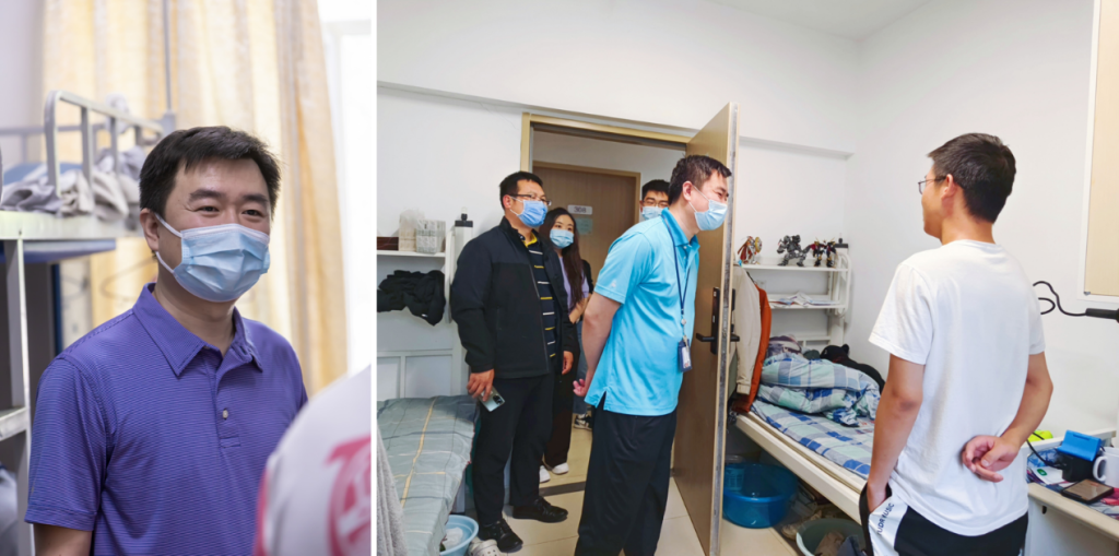 太阳成集团tyc33455cc经理刘明杰一行到实验7号楼研究生工位、沙河东区和西区宿舍看望本研员工,与同学们详细沟通了学习和科研进展,了解员工需求,鼓励同学们合理安排好科研、上课、学习及生活,积极锻炼身体,以实际行动守护美丽校园。