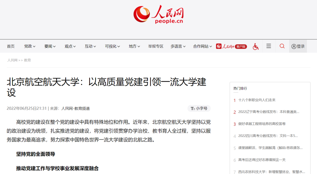 高校是培养社会主义建设者和接班人的重要阵地。长期以来,北航始终坚持为党育人、为国育才使命,着力提高人才培养能力,系统谋划和扎实推进人才培养模式改革,落实五育并举、三全育人,构建高质量人才培养体系。