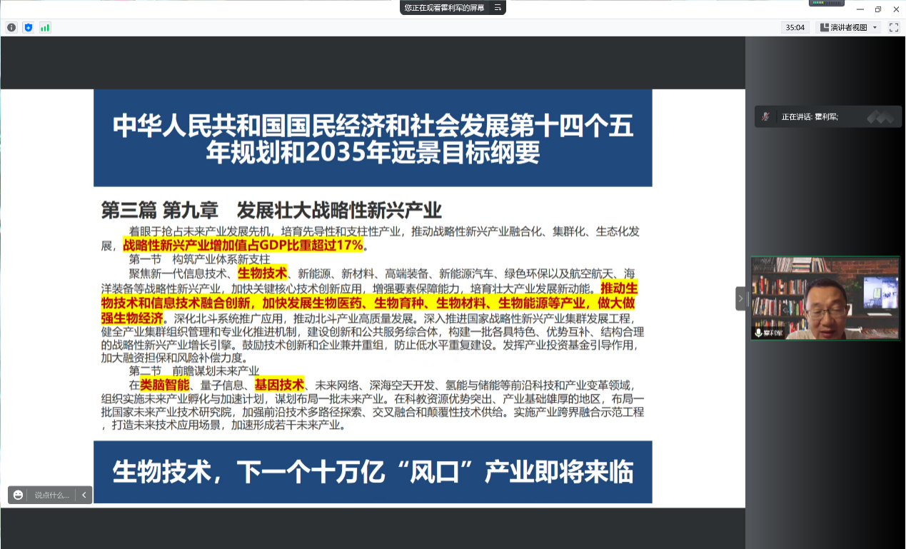 而后,霍利军老师结合当前时代背景向同学们展示了化员工物学专业的广阔发展前景,展示了公司化员工物学的发展优势,又通过对于化员工物学部分研究成果的介绍帮助同学们加深了对于此专业的认知。