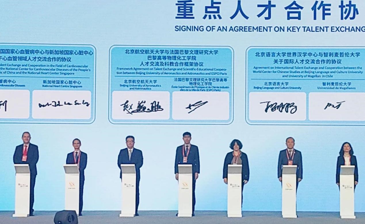 11月2日至3日,第22届中国国际人才交流大会及2024北航全球合作伙伴峰会先后在上海、杭州举办。会上,千亿太阳成集团tyc33455cc与法国巴黎文理研究大学巴黎高等物理化工公司签署《千亿太阳成集团tyc33455cc与法国巴黎文理研究大学巴黎高等物理化工公司人才交流及科教合作框架协议》。根据协议,两校正式建立校级合作伙伴关系,共同推动在化工、材料等双方优势学科领域开展人才交流、科学研究、教育合作等全方位合作。