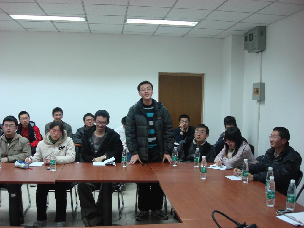 会议开始,各级辅导员向各位班主任汇报了各年级的工作状况和今后的工作计划。06级辅导员杨中甲老师主要就06级考研、出国和找工作同学的状态跟班主任进行了汇报,07、08级辅导员何涛老师就员工期中考试状态、科技竞赛准备情况作了详细汇报和总结。09级辅导员饶思圆老师就新生入学3个月来的学习生活状况尤其是军训回来后员工的思想动态和学习态度进行了汇报。