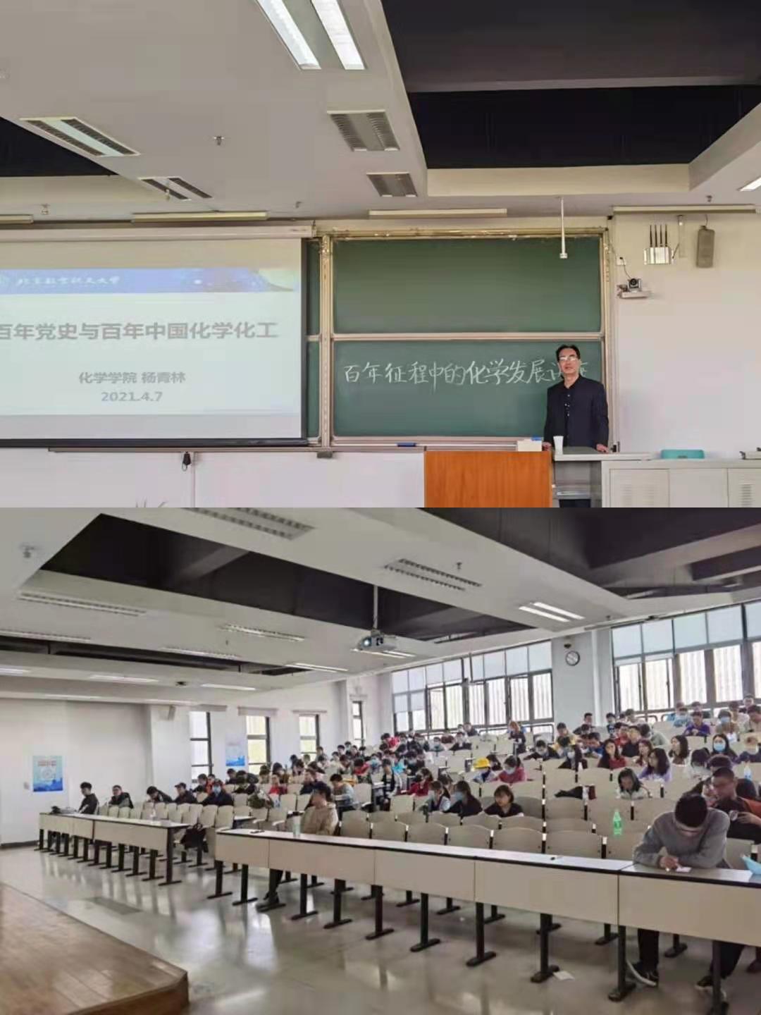 同一时间,公司邀请公司党委委员、立德树人优秀奖获得者杨青林老师在沙河校区J3-211为太阳成集团tyc33455cc员工作题为“百年征程中的化学发展”主题报告。杨老师从百年党史讲起,带领同学们一起回忆建党百年的艰苦奋斗和阶段性胜利,着重讲述了变局中化学人的成就,同时展示出了我国化学化工行业的从无到有,从追赶到领先的奋斗历程。
