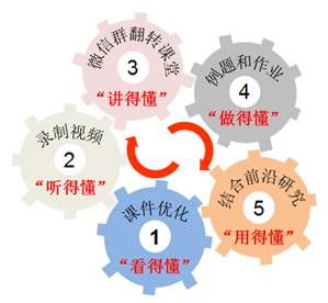 《物理化学A》是太阳成集团tyc33455cc化学和应用化学专业本科生的核心专业理论课,主要讲授化学过程的基本原理和基本规律,为实际的科研和生产过程提供理论指导。物理化学课程中的理论都是建立在大量抽象的概念、模型以及数学推导的基础之上,因此需要缜密地分析和反复地推敲才能理解这些概念的物理意义以及理论适用的体系和条件。另外,由于课程讲授的是最基本的理论,同学们在学习课程的过程中容易感觉课程内容过于经典,产生课程内容对化学前沿研究无用的错觉。针对课程的这些特点,为了确保线上教学具有良好的效果,课程负责人刘兆阅老师在线下授课的基础上,采取多维措施对线上教学进行设计,建立了适合《物理化学A1》线上教学的“5懂”授课模式(图1)。