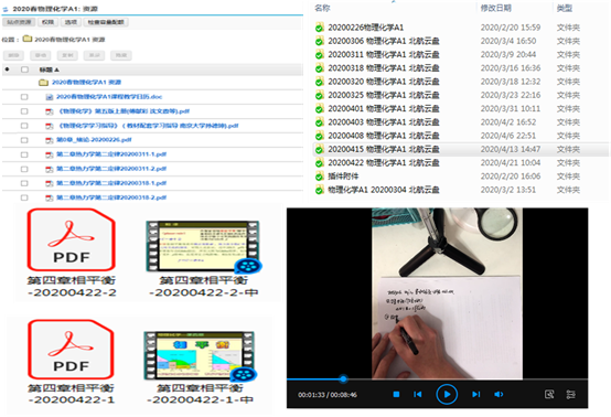为了使同学们能够准备掌握课程内容,将上述优化后的课件录制成视频,至少提前一天将压缩后的视频上传至课程中心和北航云盘供同学们下载,保证能够多渠道获得学习资料。在上课时间,同学们可以连贯地观看视频,而不受网络的影响。视频中重点强调课程中所涉及到概念、模型以及逻辑推导。比如“熵”、“可逆过程”、“化学势”、“理想液态混合物”和“蒸气压”等抽象概念以及气体、液体化学势表达式等理论的缜密推导。对于一些特别的难点,如实际气体ΔU和ΔH的计算、蒸气压与温度压力的关系等,将对其的解释制成小视频推送给员工。通过对视频的学习,使同学们在课堂上能够“听得懂”课程的基本知识点、重点和难点,提高课堂学习的效率。