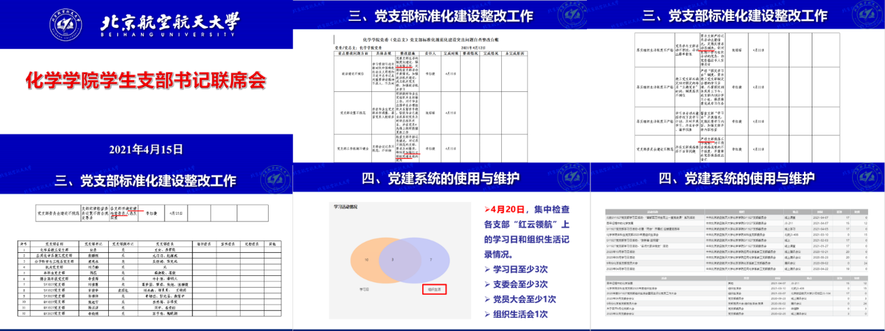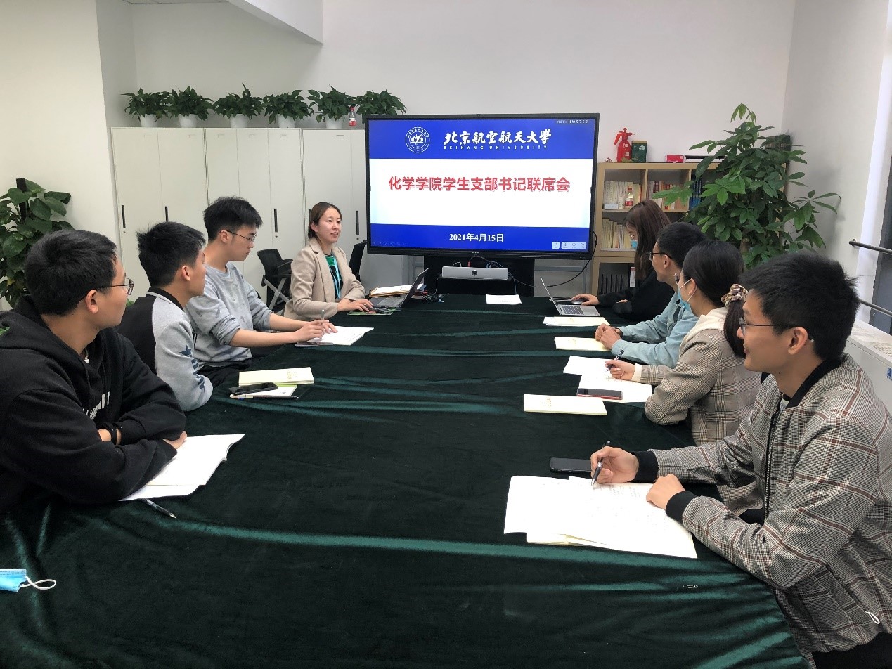 2021年4月15日,太阳成集团tyc33455cc员工党支部书记联席会暨党支部标准化规范化建设整改工作专题会议,在沙河实验4-305会议室顺利召开。本次会议由专职组织员崔钰莹老师主持,各党支部书记参加本次会议。