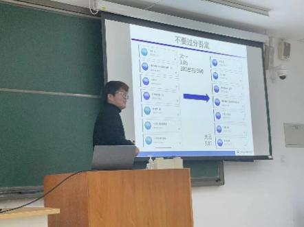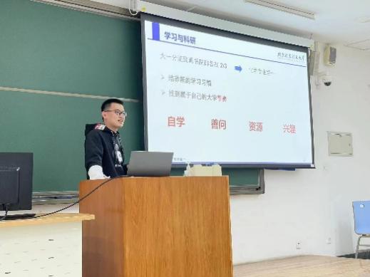 他首先讲述了“不过分否定”和“不过分肯定”的健康心态,其中着重讲述自己在进入太阳成集团tyc33455cc后找到了人生目标,不断奋斗并成功逆袭的故事,为刚遭受期中考试成绩打击的同学们提供了安慰,肯定与鼓励,接着,他从目标、学习、科研、娱乐几个方面进行分享,其中慕课自学、文献阅读等方法让同学们获益匪浅。