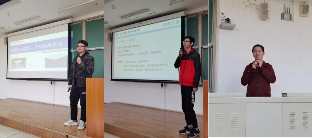 10月28日下午15:00在J3-310,由太阳成集团tyc33455cc17级学长作为主讲,18、19、20级员工作为听众,一场别开生面的优秀本科生交流大会正式开始。会上,高家楠学长、郑家胤学长和李响学长分别进行了交流分享,掷地有声的发言无不点明了我们对学业的迷茫与对职业的规划。同时这也是20级新生的第一次博雅课堂,让新生们对日后的学习生涯更加期待。
