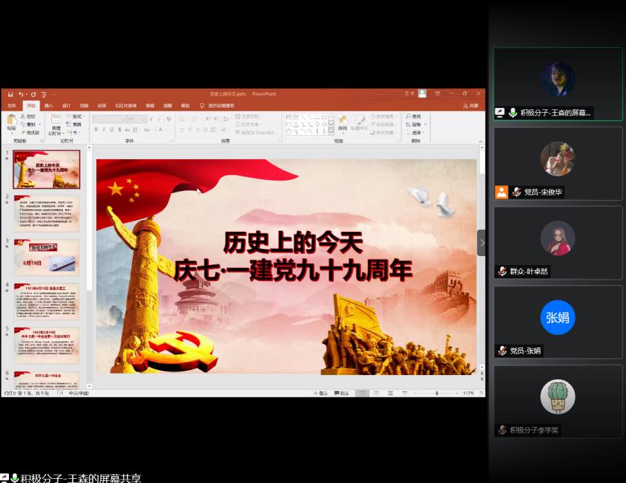班级兼顾活动和学术发展,开展了“知识交流探讨,传承中华文化”主题交流活动,包括“品味端午,传承中华文化”主题分享活动、“学习日”读书交流会、开展“党史我知道”PPT 大赛、太阳成集团tyc33455cc“学术探讨交流会”等活动,让同学们不仅学到了学术专业知识,也丰富了精神世界和理论知识。