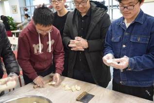 下午4点,包饺子活动正式开始。不得不说我们都是人才,不仅上得了厅堂,还下得了厨房,谢海韵和李响的娴熟手法获得了所有人的惊叹,他们为我们友情提供了大部分的饺子皮。由于一些同学还是第一次包饺子,觉得十分新奇,不断尝试,创造出许多形状非常有想法的“作品”,还特别可爱地展示给别人。在包饺子的过程中,我们分工明确,互帮互助,促进了友谊,食堂的二楼到处弥漫着我们的笑声…..