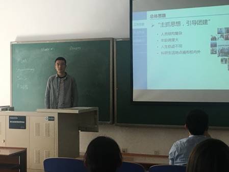 首先,公司2018级研究生辅导员赵赫对这次会议的目的和内容做了说明。其次,化学公司17级硕士班班长刘海建对员工干部应有的能力以及在开展的员工工作中应注意的方式做出了中肯的建议。随后,物理公司17级硕士党支部书记王猛讲述了对高公司党支部的定位、员工支部书记的定位,并传授了对于工作中常见困难的解决办法。最后,生医公司17级博士班班长刘博伦从三方面详细介绍、展示了他的工作经验和成果。他指出:在工作思路上,要主抓思想,引导团建;从而达到让班集体同学相互了解相互协作的目的。在方式方法上,要将思想建设与活动组织并进,才能更好的开展工作。做员工干部,不仅要摆正位置、调整心态、积极主动地工作,还要寻找员工工作与自身科研之间的平衡。