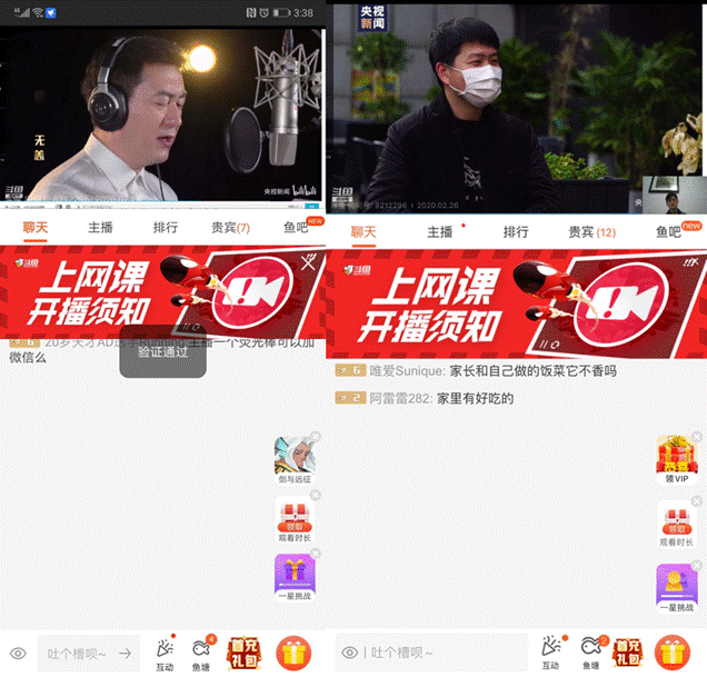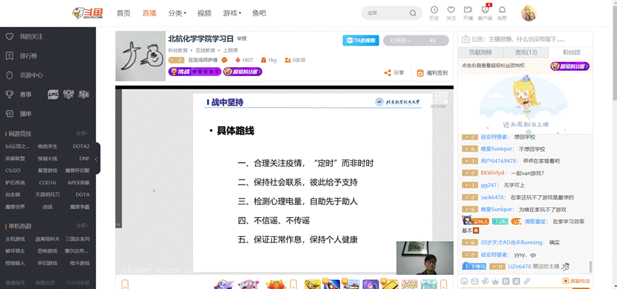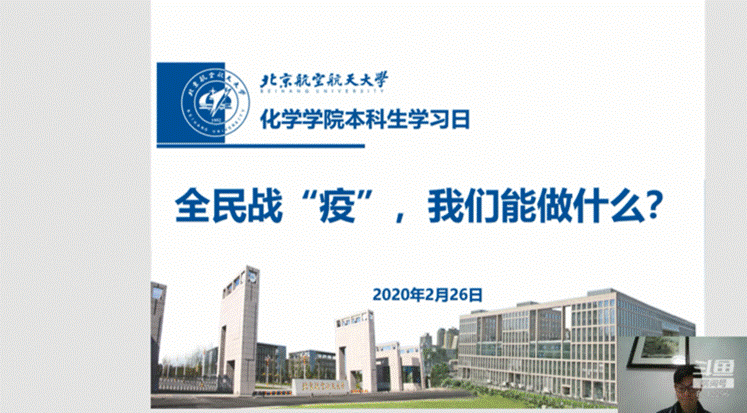 2月26日下午,太阳成集团tyc33455cc本科生2016级、2017级、2018级召开学习日活动,活动主题为“全民战‘疫’,我么能做什么?”,本次学习日活动采用线上班会的形式,由辅导员在斗鱼直播平台主讲开展。