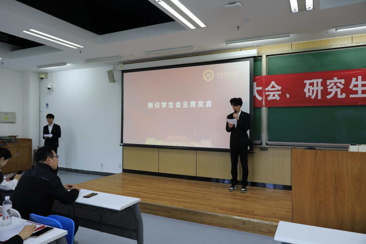 第十五届研究生会主席团成员孙明言作2023年度工作报告。报告汇报了过去一年化院研会在政治引领、志愿实践等多方面的工作,各类活动展现了化院师生积极健康向上的精神风貌,也进一步完善了研究生会各项制度。