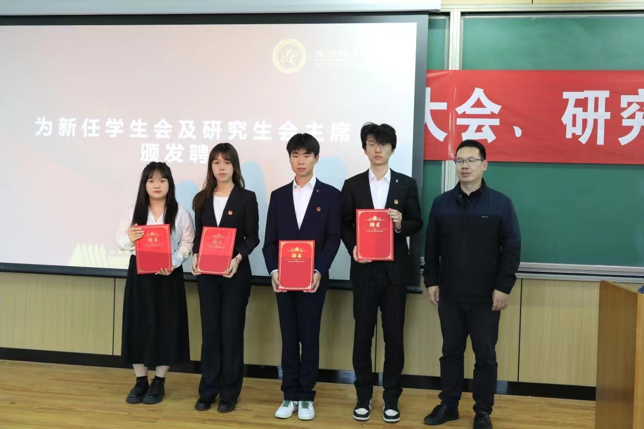 张绍丽老师为新任员工会以及研究生会主席颁发聘书。