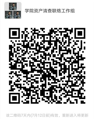 1、各位老师务必要高度重视,设备购买人是本次资产清查工作第一责任人,请第一责任人选择资产联络员配合公司进行资产清查,同时进一步明确使用人、监管人,切实落实责任到人制度。资产联络员请于7月6日(周二)12:00前扫码进群(见附件)。